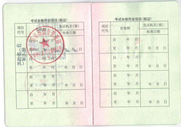 叉車證N1,電梯維修T,特種安全設備管理A,起重機指揮R1,Q2起重司機(限門座式起重機),Q2起重司機(限橋式起重機),Q2起重司機(限門式起重機),Q2起重司機(限纜索式起重機),Q2起重司機(限塔式起重機),Q2起重司機(限流動式起重機),Q2起重司機(限升降機),觀光和觀光列出司機,鍋爐壓力容器壓力管道管理A,電梯管理A,起重機械管理A,場(廠)內專用機動車輛管理A,工業鍋爐司爐G1,電站鍋爐司爐G2,鍋爐水處理G3,快開門式壓力容器操作R1,移動式壓力容器充裝R2,