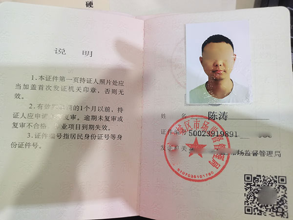 考試內容分理論知識和實際操作。理論考試題目數量為100題,考試時間為60分鐘。實際操作考試內容為部件識別、基本操作、應急處置,70分及格,證書由市場監督管理局頒發的證書!