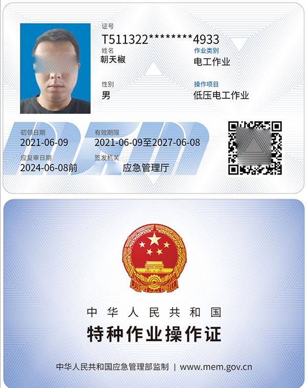《特種作業證》特種上崗操作證由應急管理部 頒發,哪里發的都可以通用的,以前叫IC卡,現在叫感應卡,3年年審一次,和身份證一樣的,只要你有專用的讀卡機,就能夠讀出卡里面的資料,但是這個讀卡機國家只給有資質的單位,比如學校,應急管理廳等才有,這證不管你拿去哪里,只要有讀卡機的地方都可以讀卡與年審,查詢方式也可以上發證部門應急管理廳的網站,上輸入證號查詢的,也可以用微信掃IC上面的二維碼查詢。