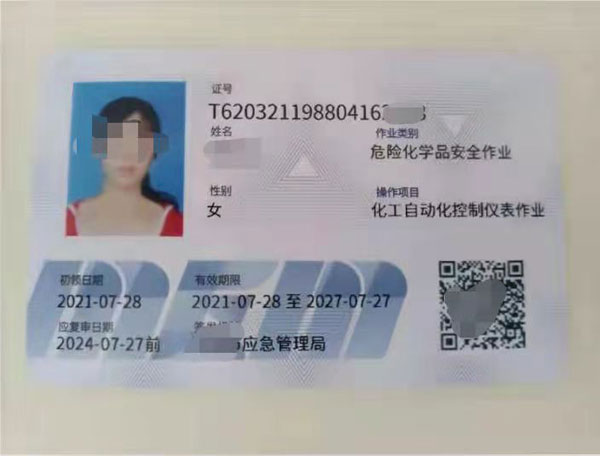 化工自動化控制儀表證書展示:
