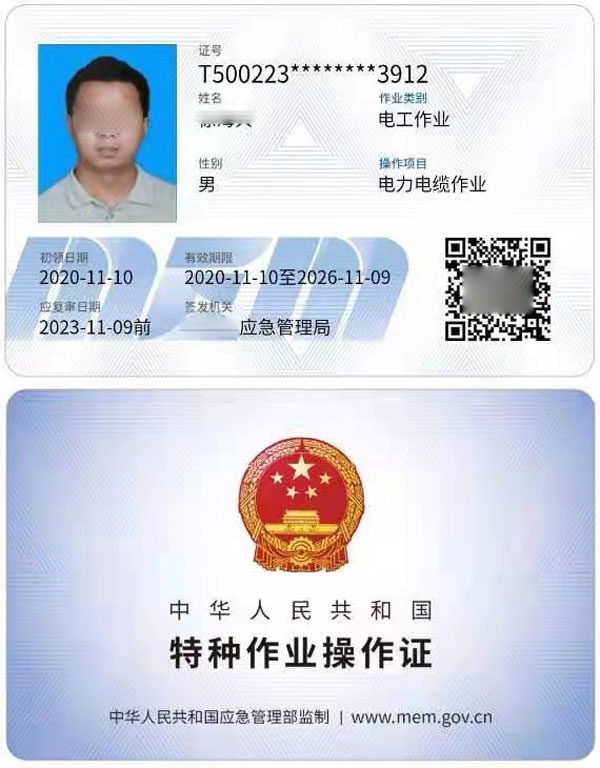 高壓電工證是從事特殊工種作業人員必須熟悉相應特殊工種作業的安全知識及防范各種意外事故的技能。要求從業人員必須持卡(IC卡)上崗,即《中華人民共和國特種作業操作證》方可上崗,此證書全國通用。老版證書每2年復審一次,新版高壓電工特種作業操作證復審是每3年復審1次。