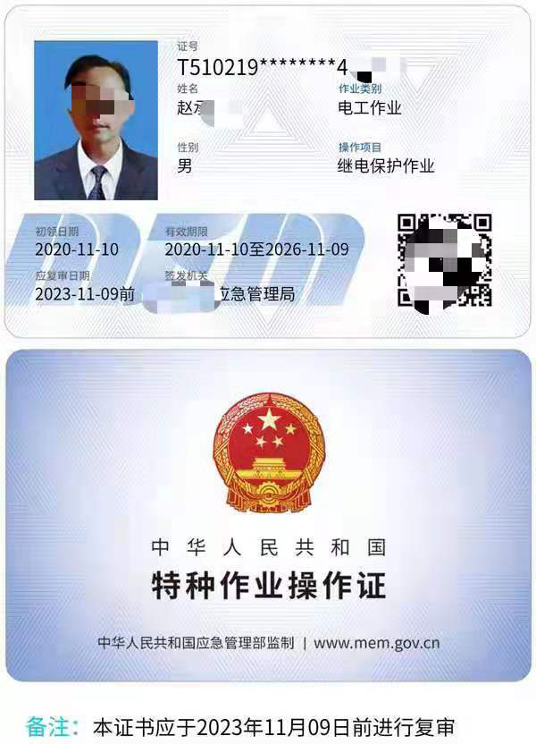 繼電保護(hù)作業(yè)證證書(shū)展示: