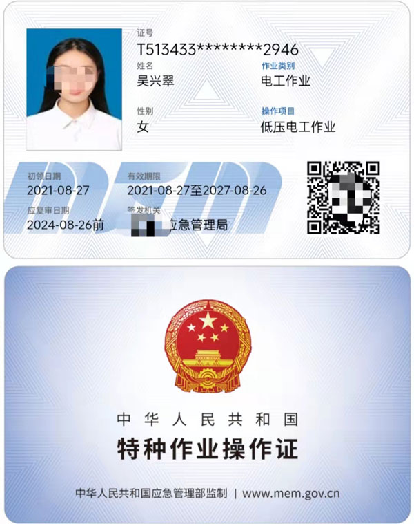電工證,焊工證,高處作業(yè),登高架設作業(yè),制冷與空凋設備運行操作作業(yè),制冷與空凋設備安裝修理作業(yè),電力電纜,繼電保護,電氣試驗,防爆電氣作業(yè),特種作業(yè)人員必須經(jīng)專門的安全技術培訓并考核合格,取得《中華人民共和國特種作業(yè)操作證》(以下簡稱特種作業(yè)操作證)后,方可上崗作業(yè)。
